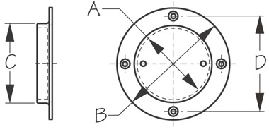 A: 4-3/16" B: 5-9/16" C: 4-1/2" D: 4-13/16" Fastener: #12 FH