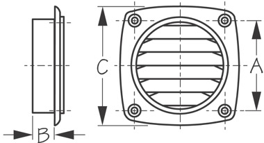 Thru vents are designed for cabin or bilge ventilation. Constructed of injection molded polypropylene they are UV resistant. For use with 3” exhaust hose. Installs with four #8 FH fasteners (not included). Vent area 3.04 square inches. Available in custom colors for large volume orders.